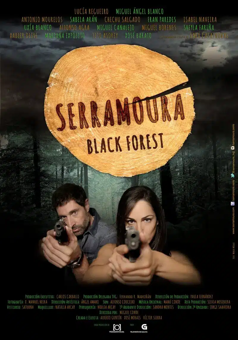Ellos son los protagonistas de Serramoura. Una serie que pretende hacer el retrato de una comunidad rural cerrada, con la madera como motor económico, la ficticia Serramoura, a través de la visión que les dá su trabajo: el de Guardias Civiles encargados de investigar los delitos de la zona.